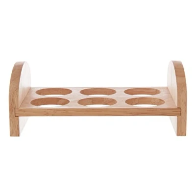 Made from rubber wood, this egg rack is a sustainable way to keep eggs close to hand Six large holes are cut into its flat surface area, holding the eggs securely in place Adds a decorative touch to kitchen worktops thanks to its natural tone and stylish design Care instructions: Wipe clean with a soft cloth Dimensions (H x W x D): 7 x 17 x 10 cm