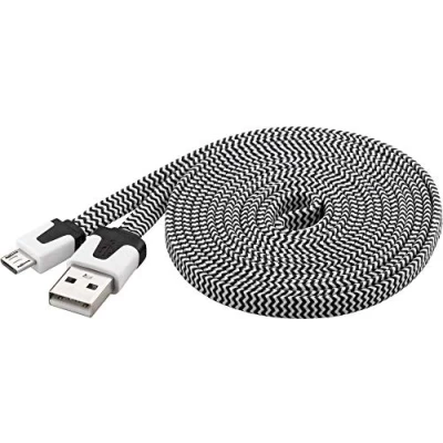 USB connection cable, USB A/ Micro USB B CU, AWG28, 2x shielded, M/ M, UL, black and white, length: 2 m Micro USB 2.0 cable, AB 2 m, flat textile cable USB A Male USB Micro B Male Moulded housing - 4-core cable, double shielded, AWG28 - Flat textile cable - Colour: black and white