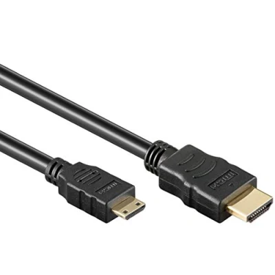 High-quality connection cable for connecting two audio/video devices via a modern HDMI interface. It is also used to connect modern phones and cameras to the TV. The cable is shielded, can transmit digital audio and video and supports the protection of digital HDCP content. Connectors: HDMI Type A Male (19 pin) / HDMI Type C (19 pin) Male Resolution: Up to 1920 x 1080 (HDTV standard 1080p FULL HD) or lower supported 1080i / 720p / 720i formats. Maximum data transfer: 4.95 Gbps - Colour depth: 24 bit (16.7 million colours) 19 core cable, double shielded, AWG30, HDMI 1.3 compatible Gold-plated connectors - Black colour - Cable length: 1 m