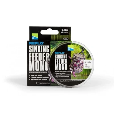 Preston Sinking Feeder Mono - Number of meters: 150 - Color: Neutral Green - Modern nylon feeder line - Extremely strong - Sinks super fast - Super strong knots - Very abrasion resistant The Sinking Feeder Mono is an extremely strong yet flexible feeder fishing line that is ideal for all feeder techniques, from roach and bream in the smaller diameters to heavy-duty method feeder fishing for large match-sized carp. The neutral green color is the optimal color that helps with camouflage in various water and light conditions. This is a line that sinks super fast and is extra strong for its diameter. It is truly the ultimate feeder fishing line.