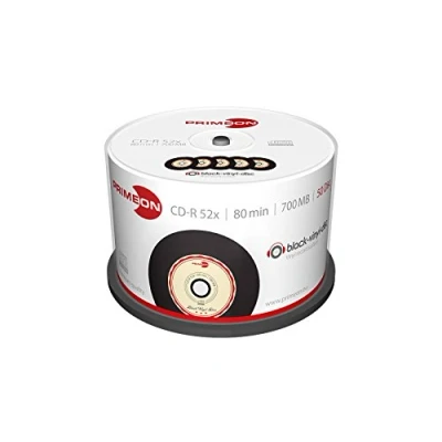 PRIMEON CD R 80Min/700MB/52x Cakebox (50 Disc), black vinyl disc Surface
