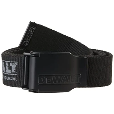 DURABLE MATERIAL: Made from 100% high-strength polyester for long-lasting performance. Woven construction resists wear and tear, making it ideal for daily use in tough job site environments. CUSTOM FIT: Fully adjustable and easy to cut to size. Tailor the belt length to match your exact waist for a secure, personalised fit that stays comfortable all day. SIGNATURE DESIGN: Features the DEWALT branded buckle for a clean, professional look. The reliable fastening system keeps your trousers secure during movement and heavy-duty tasks. REINFORCED FINISH: Black end tab adds a sharp, finished appearance while preventing fraying. Enhances durability and maintains the belt’s structure over time. BUILT FOR WORKWEAR: Designed to pair seamlessly with all DEWALT work trousers. A perfect finishing touch to any tradesperson’s uniform, offering style, practicality, and trusted brand quality.