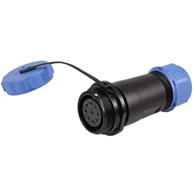 Circular Threaded Connector Inline Socket, 9-Pole, 7-12mm, IP68 Suitable for cable diameter: 7 - 12mm, IP rating: IP68, Threaded coupling, Mating cycle: >500 Rated Voltage:500V AC, Rated Current: 5A Temperature range: -25°C to +85°C, Dimension (LxØ): 64x29mm