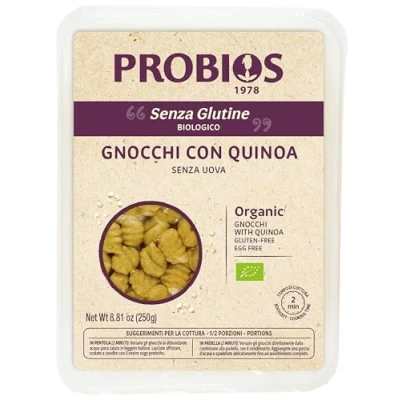 Gluten Free Dumplings with Quinoa - Created for those with gluten intolerance, these fresh dumplings combine organic potatoes and quinoa, offering a soft texture and delicious flavor. Perfect for gluten-free meals and gluten-free diets. ORGANIC & GENUINE INGREDIENTS - Made with carefully selected organic potatoes and quinoa, these dumplings contain no artificial additives or preservatives, ensuring a nutritious and high-quality eating experience. FAST AND VERSATILE COOKING - These gluten-free dumplings cook in minutes, making meal prep effortless. Simply boil them until they rise to the surface and serve them with your favorite sauces, pesto or sautéed vegetables for a flavorful dish. Rich in nutrients and naturally satiating: The addition of quinoa enriches these potato dumplings with extra plant-based nutritional value, making them a great choice for those looking for a balanced meal with tasty ingredients. Vegan and celiac friendly: Gluten-free and animal based ingredients, these organic dumplings are suitable for both vegan and celiac diets. Enjoy an authentic Italian-inspired meal without dietary worries.