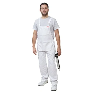 Painter's/decorator's bib and brace made from pre-shrunk 100% soft, absorbent cotton drill fabric Adjustable braces and elasticated waist for comfort, plus quilted knee with internal top opening pockets for foam knee pads Multiple pockets including large front pouch with button close, zip close chest pocket with outset small pockets, deep pen/scissor pocket, mobile phone pocket and twin front and rear patch pockets Key loop to front and tool loop to rear 31" regular leg length MORE INFORMATION BELOW in the 'From The Manufacturer' section - click on 'See More Product Details' or scroll down SIZE: 32-34" (Small) 36-38" (Medium) 40-42" (Large) 44-46" (XL) 48-50" (2XL) 52-54" (3XL)