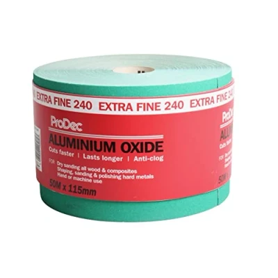 ProDec 50m Roll 240 Grit Extra Fine Grade Green Aluminium Oxide Abrasive Sanding Paper for Wood, Paint, Plaster, Filler, Metal and More, 115mm Wide Sandpaper Compatible with Machine Sanders