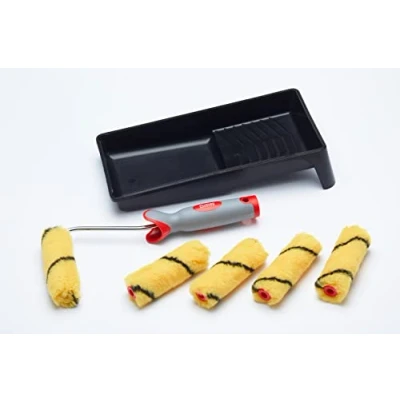 5x durable, trade quality woven synthetic fabric mini rollers with excellent paint pick-up and release for a smooth trade finish 12mm medium pile ideal for emulsion paints (eg. matt, silk, eggshell) on smooth and semi-smooth surfaces 4" (100mm) size ideal for smaller areas, painting behind radiators and pipes and touching up Ergonomic push fit mini roller frame with soft grip handle for comfort Black mini tray made from 100% recycled plastic MORE INFORMATION BELOW in the 'From The Manufacturer' section - click on 'See More Product Details' or scroll down