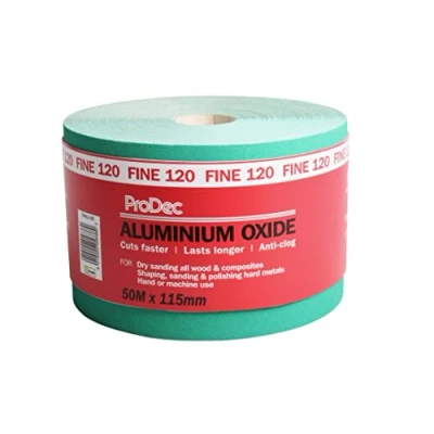 Trade quality general purpose aluminium oxide for hand or machine sanding of wood, paint, plaster, fillers, metal and more Resin-over-resin bonded abrasive lasts up to 10 times longer than sandpaper and other silicon carbide abrasives and gives an ultra smooth, even surface ready for painting, priming, staining or varnishing Crack resistant backing paper that is easily cut to size and can handle curved, moulded and irregular surfaces without falling apart 120 grit Fine grade suitable for final sanding prior to applying a first coat of paint or varnish to wood, smoothing surface imperfections, removing texture on plaster and fillers and removing water stains on wood. Not suitable for removing paint or varnish 50m roll length x 115mm width ideal for machineelectric sanders and handmanual sanders MORE INFORMATION BELOW in the 'From The Manufacturer' section - click on 'See More Product Details' or scroll down