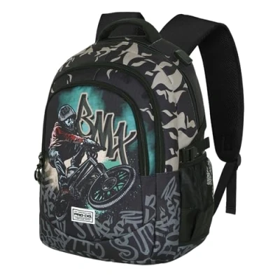 Large capacity backpack with 3 compartments and two mesh pockets Inner lining with padded pocket for electronic devices and USB port Made of highly resistant material (Ripstop) repellent to liquids Padded back with panel for transport on a trolley and ventilation channels Dimensions: 21 x 34 x 46 cm