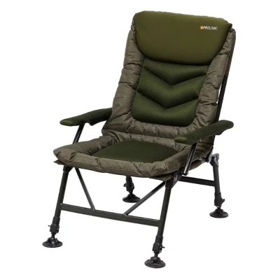 Prologic Inspire Relax Chair - Weight: 5kg - Load capacity: 140kg - Seat height: 35 – 50cm - Dimensions: 51×46×64cm - Armrests - Adjustable legs - Swivel mud legs - Soft neoprene headrest - Air-Tex breathable seat and backrest - MCP waterproof and breathable fabric - Removable armrest covers made of Air-Tex The Prologic Inspire Relax Chair is an ideal companion for relaxed fishing days on the waterfront. Weighing only 5kg and with adjustable legs, this chair offers portability and stability. The seat height is adjustable from 35 to 50cm, and with swivel mud legs, the chair stays firmly in place even on uneven terrain. The added armrests and soft neoprene headrest increase comfort during long hours on the water. The Air-Tex breathable seat and backrest, combined with MCP waterproof and breathable fabric, keep you dry and comfortable, while the removable Air-Tex armrest covers allow for easy maintenance. Compact and easy to carry, the Prologic Inspire Relax Chair provides a comfortable and relaxing seating experience for any angler.