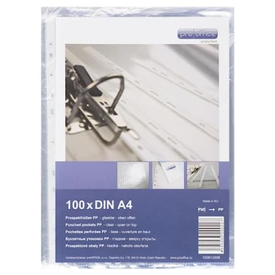 proOFFICE Document Wallets A4 Pack of 100 Transparent 0.05 mm Thick