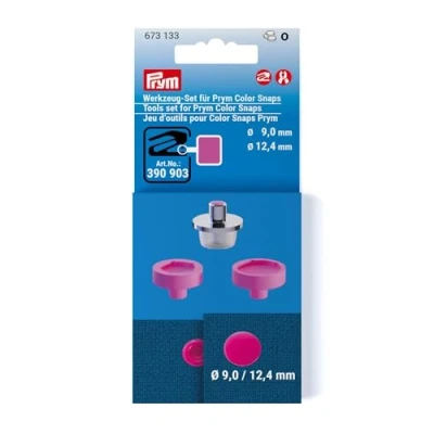 For fitting Color Snaps (Ø 12.4 mm) and Color Snaps Mini (Ø 9 mm) 3 sets of tools: for Ø 12.4 mm, for Ø 9 mm, for both diameters Accessory for Vario Creative Tool (390 903) and VARIO pliers (390 000) For stars, hearts or round variants Easy pairing of tools with matching supplies thanks to the fuchsia colour marker