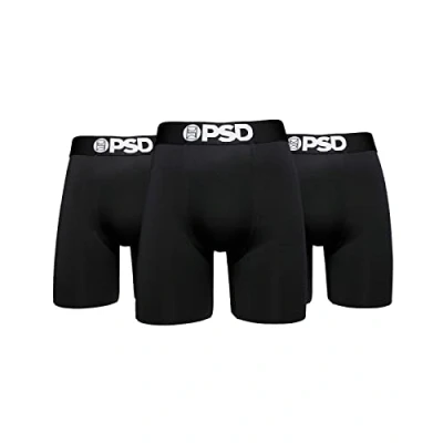 PSD Mens Boxer Briefs Solids Black 3 Pack, 7 Inch Inseam, Moisture Wicking, for Men pack 3, S