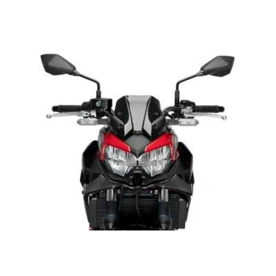 Developed in Barcelona with the most innovative technologies, the new Naked front spoiler is made from 3mm thick matte black ABS, a material that is highly resistant to any type of impact and gives your motorcycle an aggressive and elegant look you are looking for. As far as aerodynamics are concerned, the new Puig Naked front spoiler directs the air that reaches the radiator forward, and thanks to its shapes, provides almost 2 kg of downforce on the front wheel, which in turn provides an anti-wheelie effect, an anti-mould effect (more stability at high speeds), more serenity when braking and more stability when changing direction. Installation is a simple and quick task without the need for special mechanical knowledge as it is attached to the vehicle via a 3mm thick metal support. With the aerodynamic study included with the product, you can get to know all the features and advantages of the new Puig front spoiler GP. Check compatibility with your motorcycle in the product description