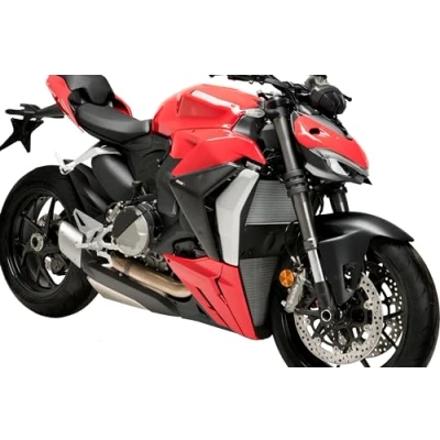 Mounting these spoilers increases vertical downforce at high speeds, an effect that improves the stability of the motorcycle and reduces the risk of loss of control over the front axle; thanks to the tests carried out in the virtual wind tunnel that can be viewed on our website, the floating of the front wheel is minimised as much as possible The load that is created allows better adhesion of the tyre and contributes to the anti-mould and anti-wheelie effect, which can occur during aggressive accelerations and cause an accident; in addition, the spoilers improve cornering and this allows the motorcycle to be better controlled The Downforce Naked Spoilers from Puig have been designed and manufactured in Barcelona according to the developments in aerodynamics of MotoGP and WorldSBK Thanks to the advances and avant-garde technologies of the company, you can equip your Naked machine with the innovations and accessories of the demanding competition; in addition to providing an aggressive aesthetic and personalising your motorcycle/customisation to your taste is here thanks to the wide range of colours Check compatibility with your motorcycle in the product description section