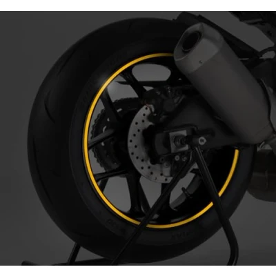 Customize your motorcycle rims with Puig adhesive strips; its reflective gold finish adds an attractive racing touch and improves visibility in low light conditions. Made of highly resistant materials to scratches, moisture and sun exposure, these strips retain their colour and adhesion even under adverse conditions or after prolonged use. Presented in an applicator-free format, they include 6 metres of adhesive with a width of 7 mm, ideal for decorating both rims evenly and precisely on motorcycles with 16" to 18" wheels. Available in a wide range of solid, fluorescent, reflective colours and special finishes such as carbon and check flag; adaptable to the unique style of every rider. Compatible Motorcycles: YAMAHA T-MAX 560 2025; YAMAHA T-MAX 560 TECH MAX 2025