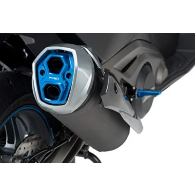 This piece is made from an aluminum block and features a colorful, anodized finish. The attractive minimalist design is available in blue, black, gold and red. Every user can choose between discreet and elegant tuning or an eye-catching and eye-catching tuning for their maxi scooter. Exhaust pipe end ring for Yamaha Kymco AK 550.