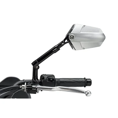 Do you want to add an adventurous touch to your motorcycle? Is your passion of exploring and experiencing anew? The PUIG approved "Explorer" mirror is perfect for this. It has been specially designed for those who love adventure and is a simple and minimalist mirror that can withstand all weather conditions while driving. It is a piece of machined billet aluminium, which thanks to its 4 rotation axes and its 30 mm extension offers a lighter weight and the possibility to adjust it according to your needs, both in the tilt and in the extension. To ensure a perfect finish, the Explorer mirror is anodized. You can choose between different colours (black or aluminium) or the combination of both. The Explorer mirrors attach to the handlebar stem but can also be attached to the original fairing of the motorcycle with the help of adapters. There are some models that also require an adapter for mounting on the pole, which should be considered before purchasing.