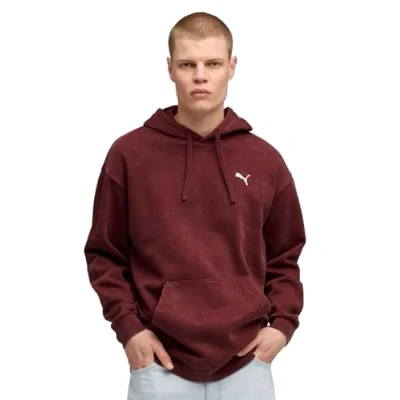 Puma Essentials Elevated Relaxed WASH Hoodie, Men's, Size: Large, Ruby shimmer