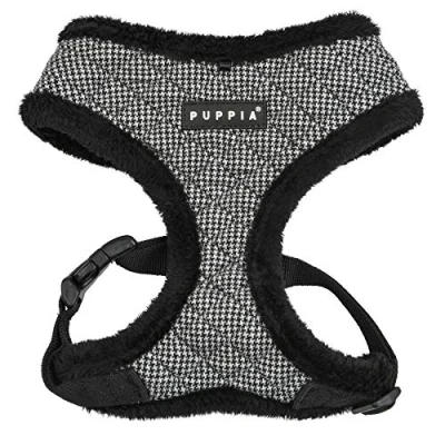 Basic harness style as “Harness A” Houndstooth quilted pattern and solid schemed Adjustable chest belt with a buckle PUPPIA SMART TAG pendant(QR Code only) is included Size: Large : 14.2" Neck, 19.3"~26.7" Chest