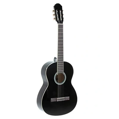 GEWA Concert Guitar Basic Plus 4/4 black, scale length 650 mm, nut width 52 mm. Excellent sound: The GEWA Basic Plus classical guitar impresses with a spruce top for a clear and full sound, ideal for beginners and advanced players. Robust Construction: Back and sides made of basswood provide a stable structure that ensures durability and resilience. Comfortable playability: The fingerboard made of pacca wood and the nickel silver frets provide a comfortable playing feel and precise handling. Tuning accuracy: Chrome-plated tuners ensure reliable tuning accuracy, keeping the guitar perfectly tuned at all times.