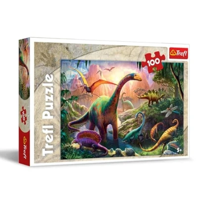 The puzzle consists of 100 pieces which when assembled form a picture measuring 410 x 275 mm depicting dinosaurs The vivid colors and friendly puzzle shapes encourage the children to play while the interesting illustrations catch their eyes. Being a mix of education and amusement the jigsaw puzzles stimulate curiosity and imagination in a pleasant way as well as reassure the child teach it patience and perceptiveness build self-confidence and provide a great concentration exercise The individual jigsaw puzzles have been adapted to the cognitive abilities and development of children of various ages Made of safe high-quality and natural materials it’s a perfect gift for every child., Manufacturer: Trefl