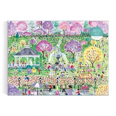 1000 PIECE Jigsaw Puzzle - Michael Storrings puzzle perfectly captures the spirit of Easter festivities with lawns full of happy children. This puzzle is just the right level of challenge for the whole family to join for hours of puzzle fun! The box includes an insert with the complete image of the puzzle for reference. BRIGHT & BOLD WORK OF ART - This puzzle features a charming scene in a whimsical park full of colorful sherbet trees, a water fountain for Easter bunny, puppies and rabbits galore. Puzzle lovers will appreciate all the spring details by assembling the image of the city with all its happy children, colorful eggs and a gazebo on a sunny lawn. PERFECT FOR GIFTING Whether you're looking for a fun activity for a rainy day or a unique gift for an Easter gift basket, this puzzle is sure to impress. With its intricate details and challenging design, this puzzle is perfect for anyone who loves Easter or puzzles. The high quality painted image of a spring Easter egg hunt puzzle makes it a beautiful and eye-catching addition to any home or office. EASY HANDLING - The 1000 pieces of ribbon cut puzzle pieces are thick and sturdy. Finished puzzle measures 20" x 20". The grey puzzle contains 90% recycled paper. The packaging contains 70% recycled paper and is responsibly made from FSC certified materials. Printed with non-toxic inks. GALISON Since 1979, our vision at Galison has been to inspire people by bringing art into everyday life with home office supplies, home decor, stationery, puzzles and games., Manufacturer: Galison