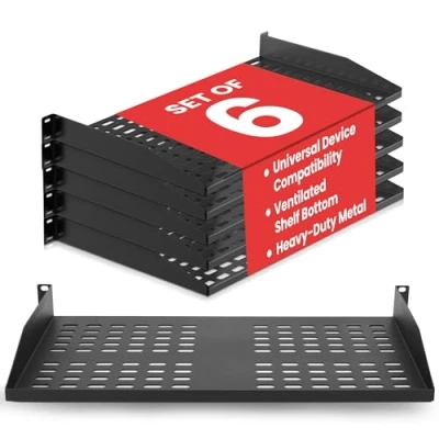 ENHANCED AIRFLOW DESIGN: This 6-pack of individual 1U server rack shelves features vented metal construction, ensuring excellent air circulation to reduce heat build-up. This maintains safe temperatures, extending equipment lifespan. VERSATILE DEVICE SUPPORT: Accommodates a wide range of equipment, including non-rack-mounted and half-rack-width devices. This adaptable rack shelf provides flexibility, making it suitable for various IT, AV, and computer systems. PERFECT FOR MULTIPLE SETTING: Whether in a professional studio, a bustling office, or a home network setup, this server rack shelf offers seamless adaptability. Its robust build ensures reliable performance across diverse applications and settings. UNIVERSAL COMPATIBILITY: Designed to fit all 19-inch server racks and standard 1U shelves, this tray is compatible with most server and network equipment. Ensures a snug fit with easy installation, making it an essential component for any rack setup. HEAVY-DUTY LOAD CAPACITY: Built for strength, this rack shelf supports up to 110 lbs of equipment. The spacious tray dimensions (17.6’’ x 10.0’’) and mounting measurements (19.0’’ x 10.0’’ x 1.7’’) offer ample space for multiple devices.