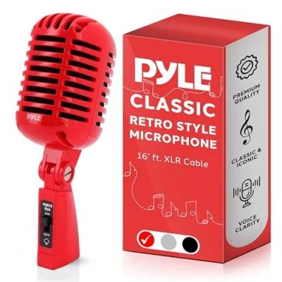 🎤 Retro Design: Pyle Pro’s vintage-inspired microphone adds a touch of classic elegance to your performances, blending timeless style with modern sound. 🛡️ Built-in Pop Filter: This dynamic mic features a pop shield to reduce popping noises, ensuring clear audio. Comes with a 4.9m XLR cable. 🔊 Exceptional Clarity: Enjoy crisp sound with a 30Hz-15kHz frequency response, -50dB sensitivity, and 600-ohm output impedance. 🎶 Unidirectional Mic: The cardioid pickup pattern captures sound from the front while minimizing background noise, ideal for live gigs and studio work.