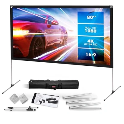 Pyle Projector Screen with Stand 80" 16:9 HD 4K Portable Lightweight Freestanding Foldable Indoor Outdoor Movie Projection Display Frame for Home Theater