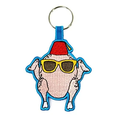 DESIGNED, PRINTED AND HAND-FINISHED IN THE UK - with a strong metal split-ring and soft, shaped fob to securely keep hold of the keys to your apartment and your friends' apartments ATTACH TO A BAG OR OUTDOOR JACKET- with its soft woven feel, it's ideal to slip onto the zipper of an outdoor jacket or attached to a gym bag, holdall, cabin bag or rucksack to mark it as yours SHOWS HILARIOUS THANKSGIVING TURKEY - inspired by the turkey that Monica puts on her head to cheer up Chandler in a classic scene from the hit show GREAT GIFT FOR FRIENDS FANS OF ALL AGES - anyone who loves the romantic escapades of the tight-knit pals will enjoy this keyring that evokes their enviable '90s Manhattan lifestyle GENUINE FRIENDS MERCHANDISE - based on the long-running NBC sitcom starring flatmates Rachel and Monica, her brother Ross, and friends Phoebe, Chandler and Joey, officially approved by Warner Bros Studios