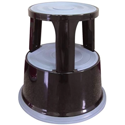 Versatile and hard wearing metal step stool For warehouse, office or domestic use Spring loaded castors retract when weight is applied to the stool Protective bumper protects walls and furniture Safe and secure with non-slip treads Compliant with EN14183 standard Height: 430mm Top diameter: 290mm Base diameter: 435mm, Weight: 5kg, Colour: Black, Maximum weight capacity: 150kg