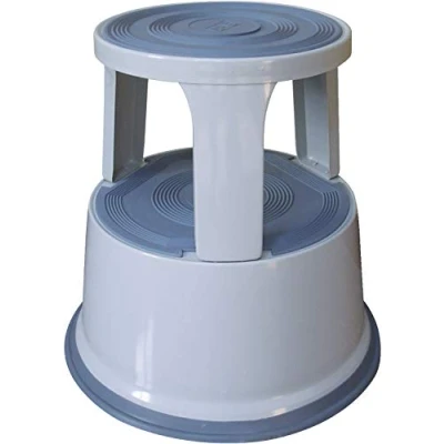 Versatile and hard wearing metal step stool For warehouse, office or domestic use Spring loaded castors retract when weight is applied to the stool Protective bumper protects walls and furniture Safe and secure with non-slip treads Compliant with EN14183 standard Height: 430mm Top diameter: 290mm Base diameter: 435mm, Weight: 5kg, Colour: Light Grey, Maximum weight capacity: 150kg
