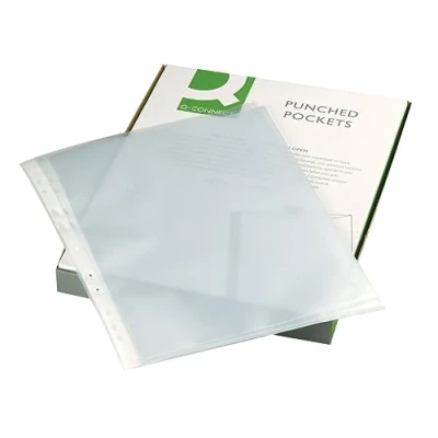 Punched pockets keep your documents in perfect condition Punched to fit standard ring binders or lever arch files Transparent so you can easily see the document inside Perfect for storing precious documents such as certificates Great for display purposes Made from lightweight 50 micron plastic Textured anti-glare surface Size: A4 Pack of 100