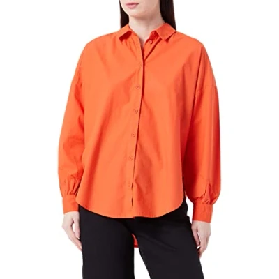 The fit is loose Has an extended back hem, with rounded hem Poplin Cotton Lightweight Has a shirt collar Has a button placket, with overlapping shoulders, has long sleeves, with cuffs