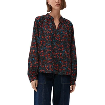 The fit is loose With cuffs, has long sleeves Lightweight crpe With filigree lace, with all-over print With slit and button as an eye-catcher, with crew neck