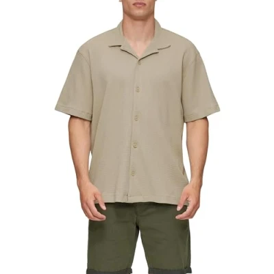 Lapel collar Short sleeves Button placket Waffle pique structure Fit: relaxed fit