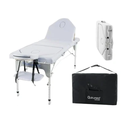 Quirumed Aluminium Folding Table 186 x 66 cm with Double Backrest White
