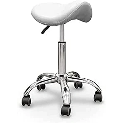 QUIRUMED Pony Stool Chrome Base 5 Wheels White