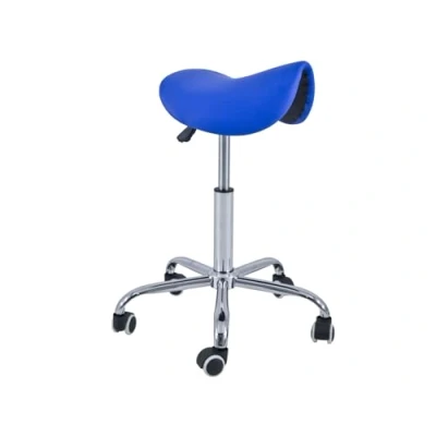 QUIRUMED Stool Pony 5 Wheels Chrome Base Blue