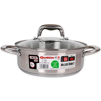 Professional casserole from Quttin. Stainless steel and heat-resistant glass lid with steam valve Suitable for stewing, boiling and oven Diameter: 22 cm. Height: 8 cm. Capacity: 3 litres. Steel thickness: 8 mm. Suitable for all types of stoves and ovens: induction, ceramic, gas, electric or halogen. Does not mix flavors Stainless steel handles Easy to clean, durable and frequent use. Dishwasher Safe Healthier cooking with less oil