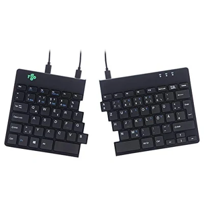 R Go Split Keyboard, Ergonomic Design with Keypad and Integrated Pause Display, QWERTZ (DE) Layout, USB Wired, Black