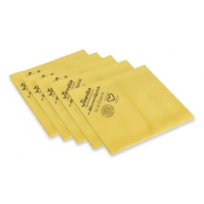 r-MicronQuick is the eco-friendly, long-lasting professional microfibre cloth from Vileda Professional. It is made from 70% recycled microfibers, which deliver superior streak-free cleaning performance in one stroke. This eco-friendly cloth removes up to 99.99% of viruses and bacteria and allows chemical free cleaning using just water. Therefore, the r-MicronQuick is ideal for the health care sector, where a high level of cleanliness and hygiene is required. r-MicronQuick has won the Nordic Swan eco-label, which emphasises our commitment to sustainability and the fact that our products are safe for users and the environment. Clean all surfaces such as stainless steel, plastic or ceramic in one stroke without leaving any unwanted marks. This all-purpose and eco-friendly towel is specially designed for everyday use. R-MicronQuick is ideal for the pre-impregnation method, which significantly reduces water and chemical consumption. It is also suitable for use with the bucket and spray method.