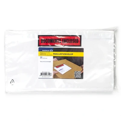 Raadhuis DL self adhesive packing list envelope documents enclosed, 225mm x 122mm (100 pack)