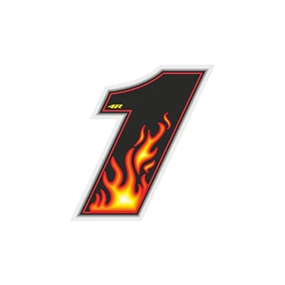 Racing Number 1 Medium, Flames, 10 x 7.5 cm
