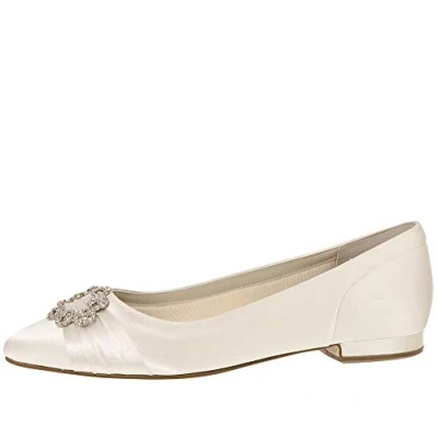 Incredibly pretty and perfect for brides looking for a flat wedding shoe Crafted from our luxurious ivory satin and finished with a gorgeous diamante brooch 1.25cm / 3/8" heel height We can transform your Rainbow Club Ivory shoes and accessories to any colour you desire, just find our Colour Pack for more details Bliss Comfort – featuring our signature padded linings as well as a super-soft underfoot cushioning, cleverly designed to support you all day long