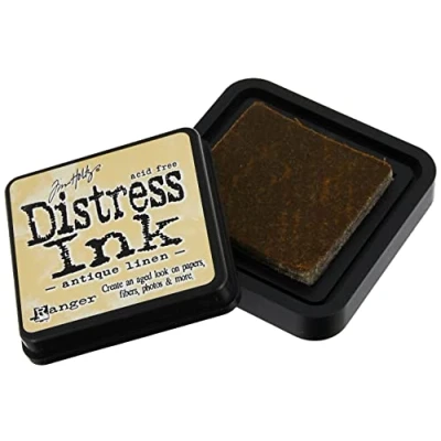 Ranger Tim Holtz Distress Ink Pad Antique Linen 2x2" Raised Felt Ink Pad Water Based Fade Resistant Dye Ink Weathered Vintage Look Acid Free and Non Toxic