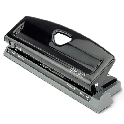 Rapesco 1725 Adjustable 6 Hole Punch, 9 Sheet Capacity, Black