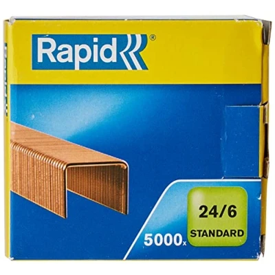 Rapid 24/6mm Standard Staples, For Stapling up to 20 Sheets, Use with Desktop and Electric Staplers, Copper Plated, Box of 5000, 24860000