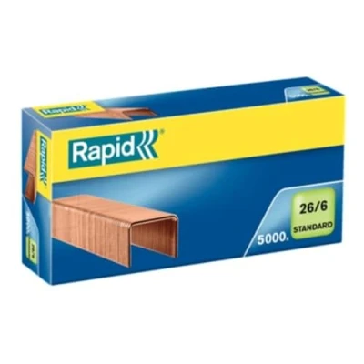 Rapid 26/6mm Standard Staples, For Stapling up to 20 Sheets, Use with Desktop and Electric Staplers, Copper Plated, Box of 5000, 24862100